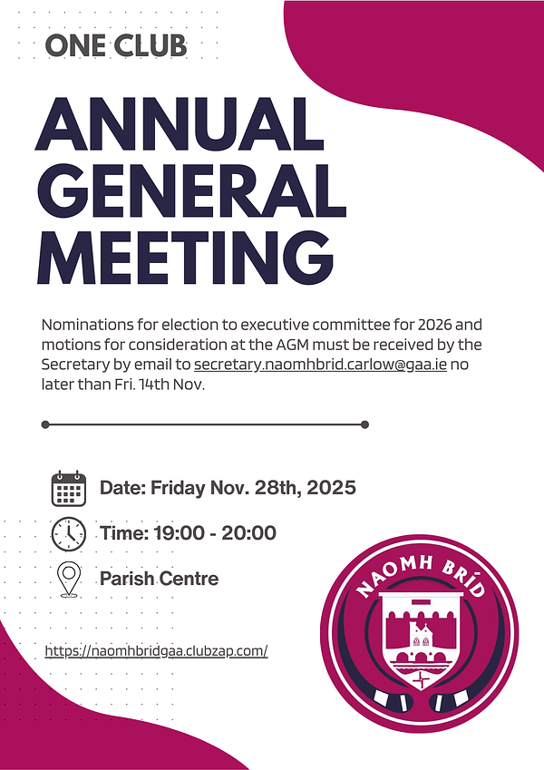 If you're interested in getting involved and helping to shape the future of our One Club, then please reach out to Tom (087-2996427), Alan (086-8366405) or any member of our committee.